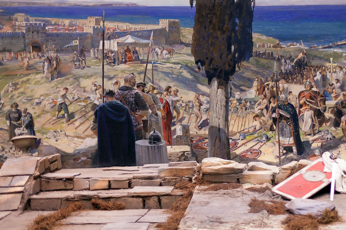 Размеры полотна впечатляют: 35 на 5 метров. Огромное количество деталей, множество персонажей… Автор мастерски распределяет акценты и позволяет охватить взором каждый уголок на побережье. Он прекрасно владеет цветовой символикой, которая указывает на характер происходящего события.