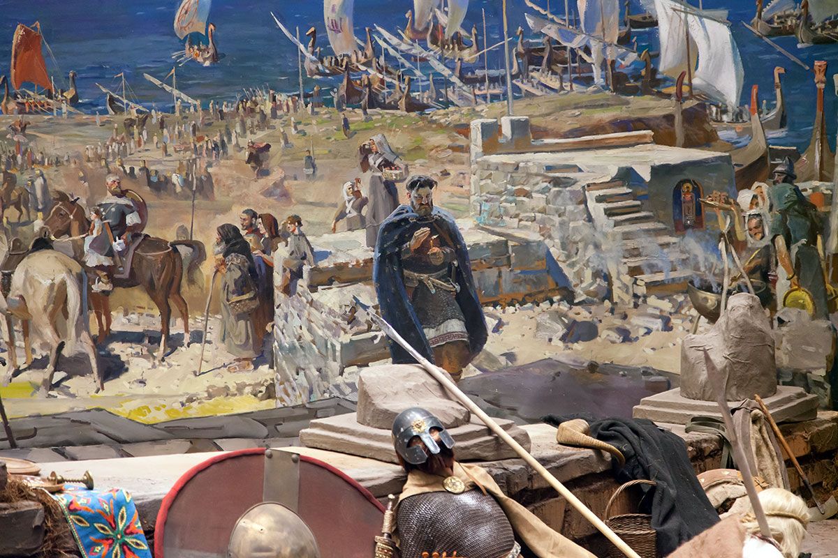 Здесь на фоне бескрайнего моря, происходит таинство перерождения князя и дружины. Они вернуться отсюда на Русь уже другими. И будут крестить в водах Днепра и других рек русский народ.