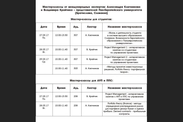 Мастер-классы от международных экспертов: Александра Ключникова и Владимира Крайчика – представителей Пан-Европейского университета (Братислава, Словакия)