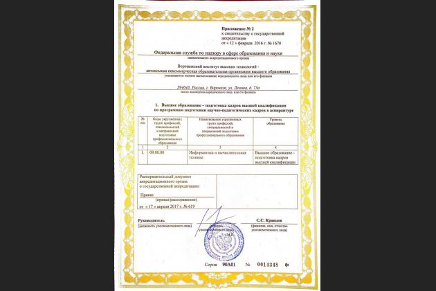 В Воронежском институте высоких технологий проведена аккредитационная экспертиза по основной образовательной программе подготовки научно-педагогических кадров в аспирантуре 09.06.01 Информатика и вычислительная техника (уровень подготовки кадров высшей квалификации), по двум направленностям: