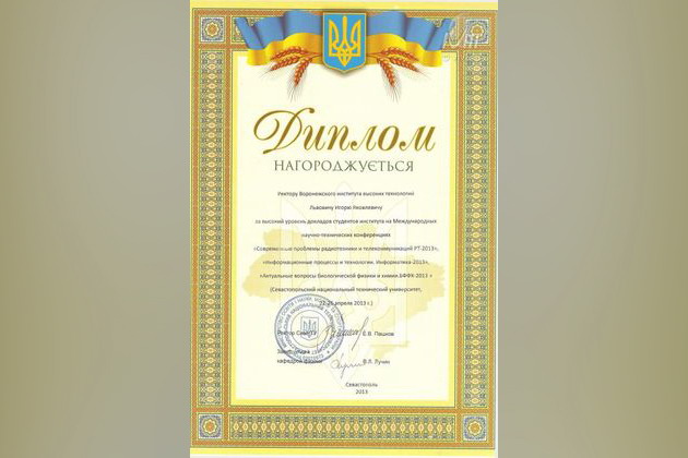 Интересными оказались и ребята, молодые ученые, с которыми мы отправились на экскурсию после секционных заседаний. Мы посетили Диораму, Бахчисарай, увидели фонтан слез, воспетый А.С.Пушкиным. В непринужденной обстановке уютных кафе мы познакомились не только с научными интересами наших коллег, но и чем они увлекаются, где работают. После экскурсий состоялось завершающее пленарное заседание, на котором награждались лучшие работы. Решением Оргкомитета конференций мы были награждены дипломами, а ректору Воронежского института высоких технологий Львовичу Игорю Яковлевичу организаторы выразили благодарность за высокий уровень докладов студентов ВИВТ.