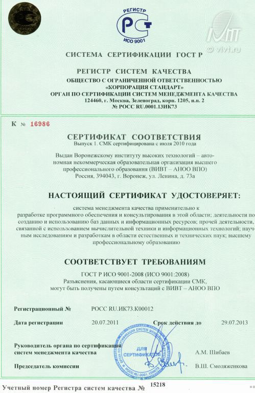 На заседании ученого совета, который состоялся в Воронежском институте высоких технологий 24.11.2011г., подвели итоги работы в уходящем году.