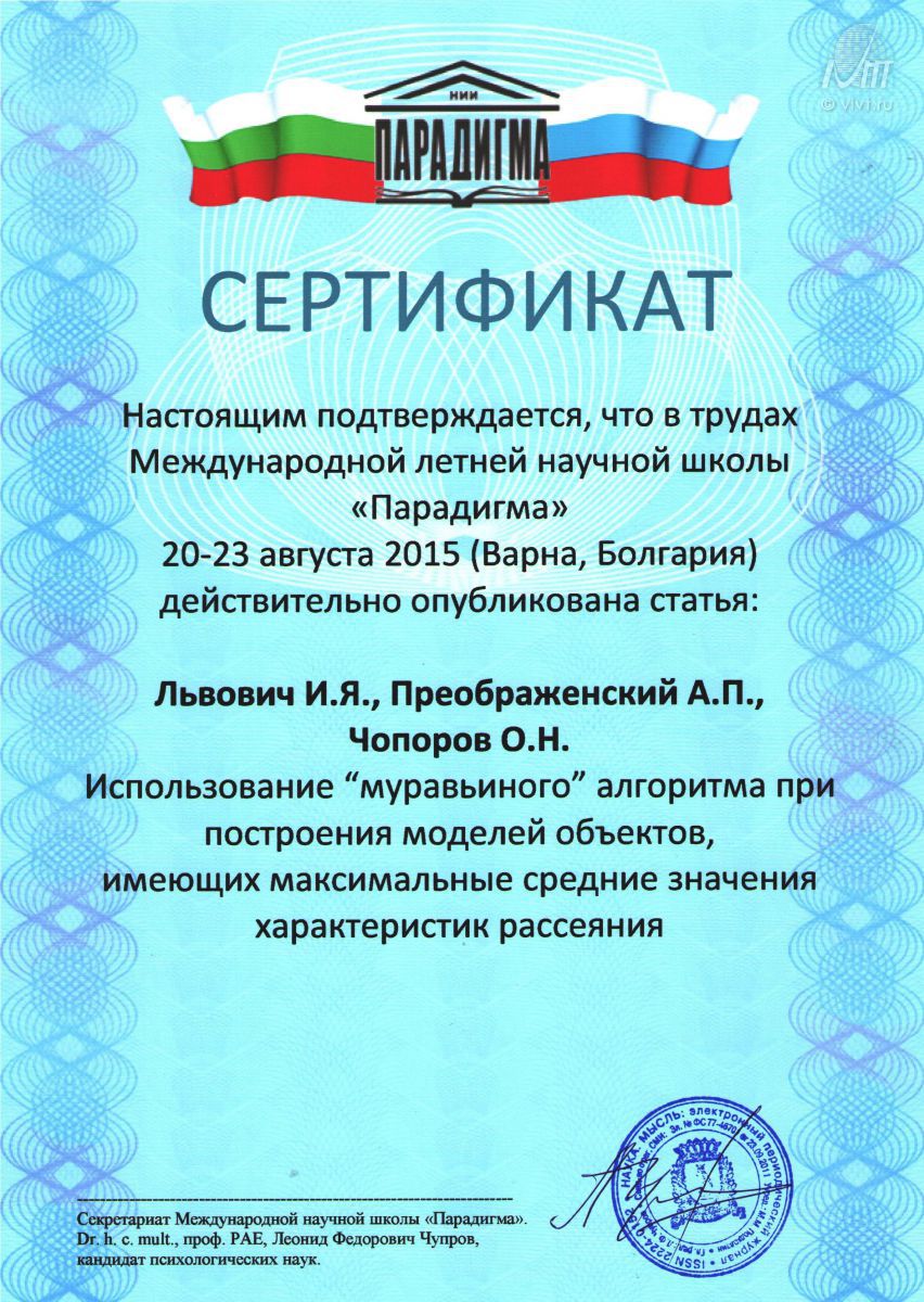 С 21 по 23 сентября 2015 года в г. Суздаль Владимирской области на базе гостиницы ГТК Турцентр проходила 8 международная конференция «Акустооптичекие и радиолокацинные методы измерений обработки информации». Студентка ВИВТ Нечаева Арина представляла доклад на тему, связанную с повышением эффективности современных систем связи.