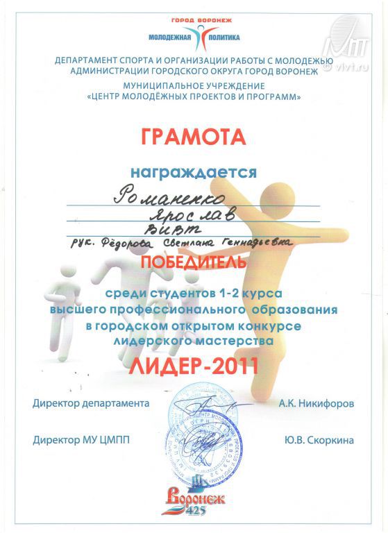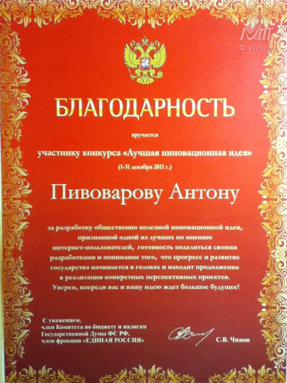 Церемония награждения победителей состоялась 10 декабря 2011 в Воронежском институте высоких технологий.