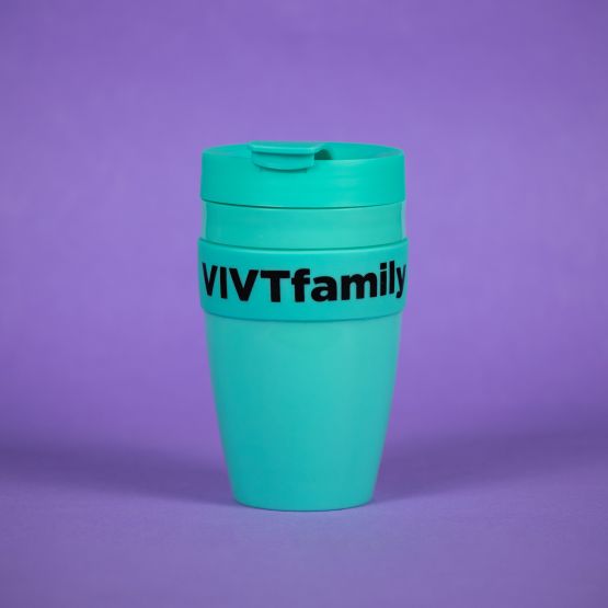 Кружка #VIVTfamily бирюзовая с черной надписью