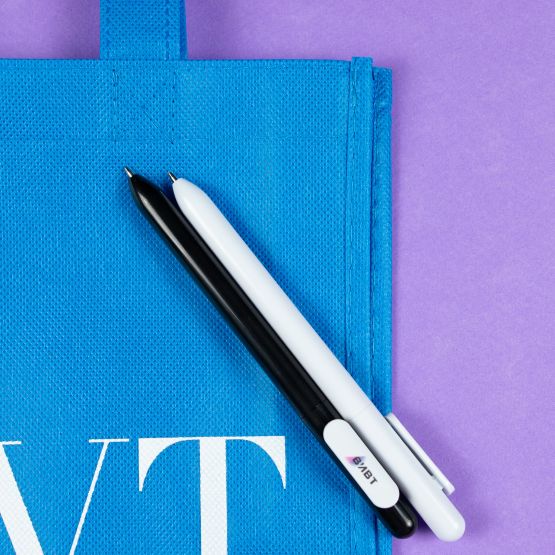 Ручка из пластика с глянцевым покрытием и белым глянцевым клипом.