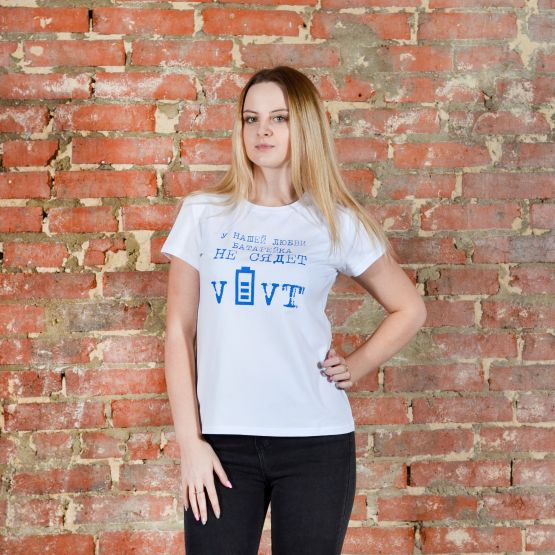 Футболка с принтом «У нашей любви батарейка не сядет»